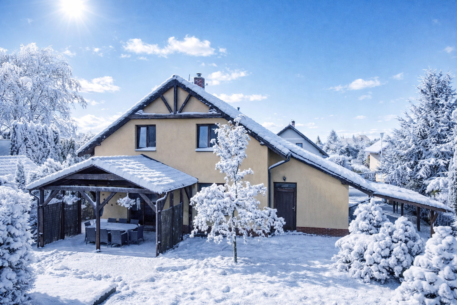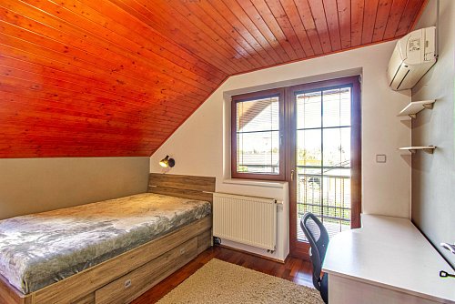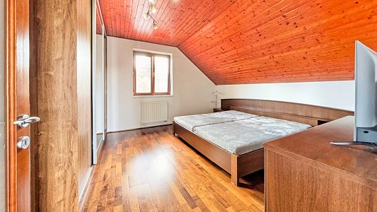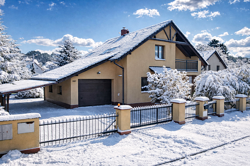 Představte si zimní večer, kdy za vámi tiše zaklapne elektrická brána, venku se třpytí sníh a z domu vás už vítá teplo, světlo a klid. Na Myslivecké ulici ve Skřečoni čeká rodinný dům, který není jen stavbou, ale místem, kde vznikají vzpomínky. V přízemí vás obejme útulné 2+kk s krbem, jehož teplo se rozlévá celým domem, v patře pak tři samostatné pokoje s vlastní koupelnou, kde má každý člen rodiny svůj bezpečný kout. Úsporné vytápění plynovým kotlem v kombinaci s krbem drží náklady nízko, takže si zimu užíváte bez starostí. Dům stojí v mimořádně klidné lokalitě s pouhými pěti sousedními domy, na slepé ulici, kde děti staví sněhuláky, smějí se a do školy i školky dojdou bez přecházení rušné silnice. Zastřešená terasa, rozlehlá zahrada o velikosti 978 m² a 140 m² obytné plochy dávají prostor pro rodinný život v každém ročním období. Prohlédněte si fotografie, video prohlídku i 3D sken a možná už při první prohlídce ucítíte ten pocit, kdy si řeknete: „Tady jsme doma.“